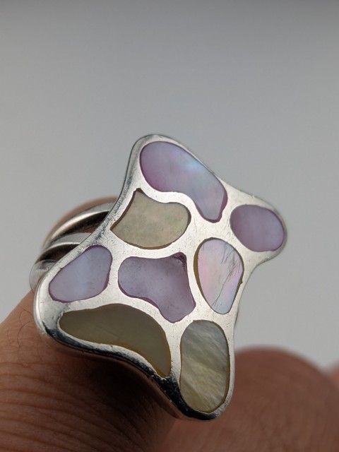 🩷💜💍Vintage Mosaic Mother Of Pearl Sterling Silver Statement Ring SIZE 5.5✅