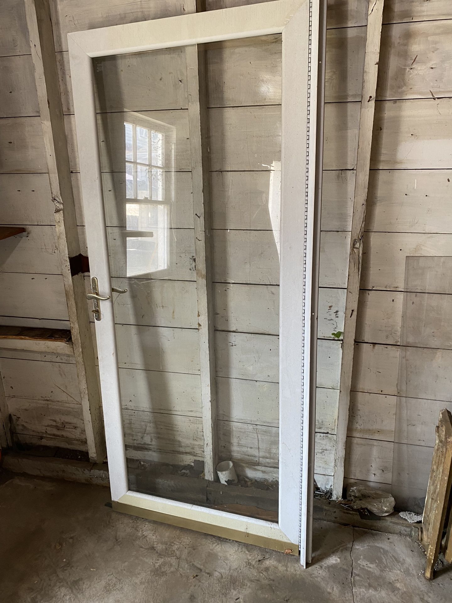 Like New Aluminum Screen Door in great condition comes with frame. 35” x 81”
