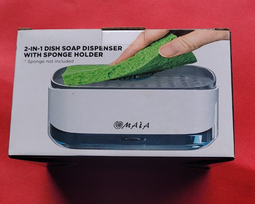 OMAIA 2-in-1 Dish Soap Dispenser with Sponge Holder - dishwashing Liquid Dispenser for Kitchen - Smart Kitchen Gadgets 2023 - Sink Countertop Organizer for Kitchen Sink Brand new.