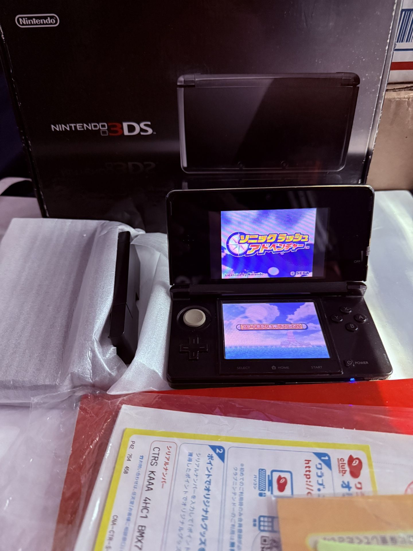 Nintendo 3ds black cib Tested working Japanese consoles Charging dock plays USA DS games No stylus Comes with charger Has stickers as shown