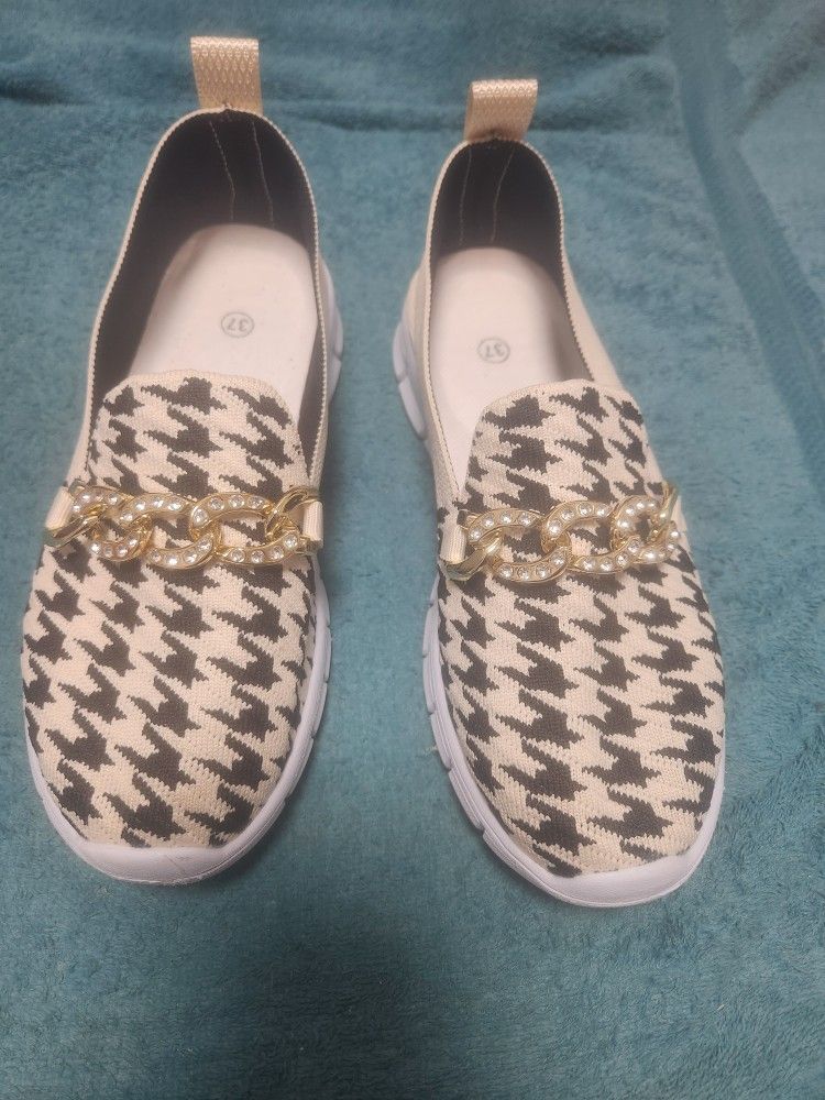 7 1/2 beige & black flats. $12 cash. Pickup in Bolingbrook.