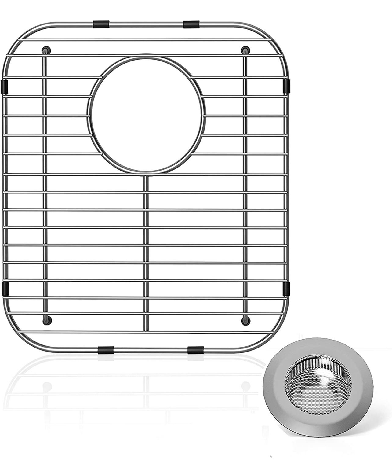 13.2" x 11.6" Stainless Steel Kitchen Sink Grid, Sink Protectors With Rear Drain Hole Sink Rack for Bottom of Sink, Anti-rust Metal Sink Bottom Grid W