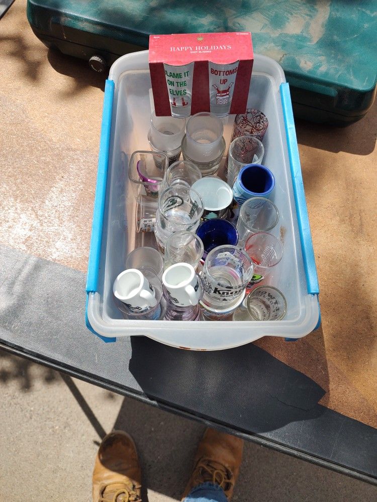 Around 30 shot glasses