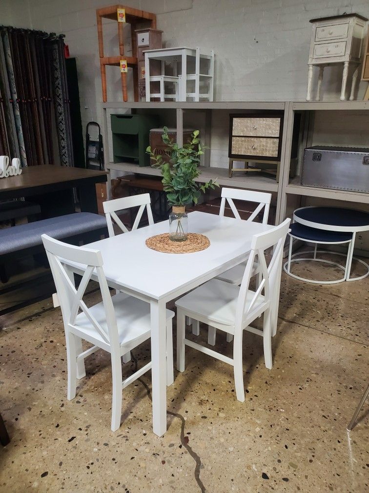 Looking for a nice white dining set with table and 4 chairs with x back 47"x 30"W 30"H
