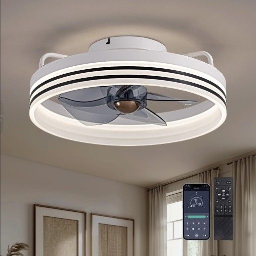 Ceiling Fans with Lights and Remote, Low Profile Ceiling Fan with Stepless Dimming Lighting, 6 Wind Speeds, 15.7 Inch Flush Mount Ceiling Fan for Bedroom