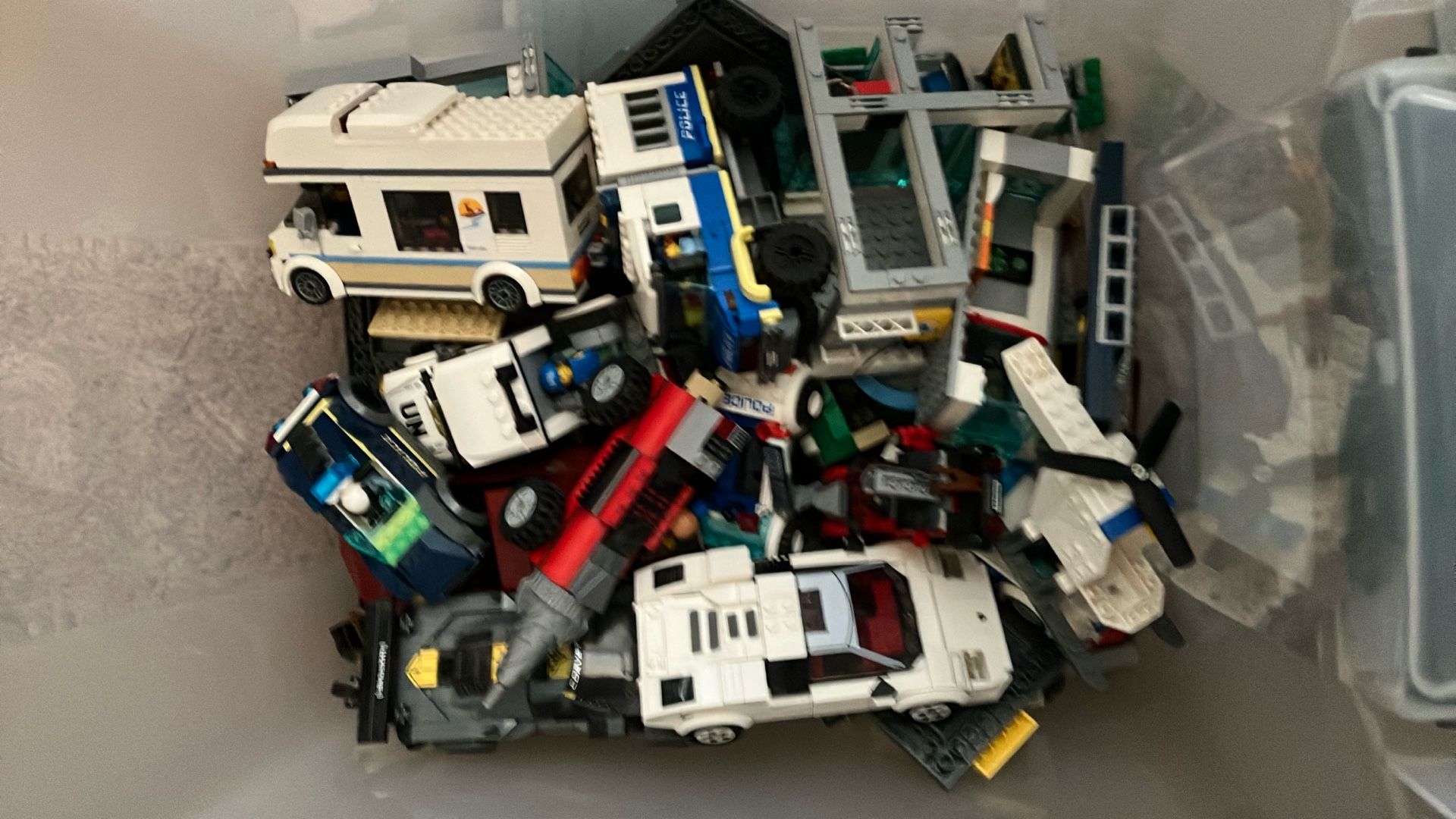A Box Full Of Different Lego Sets With 2 Base Plates And Some Custom Lego Sets