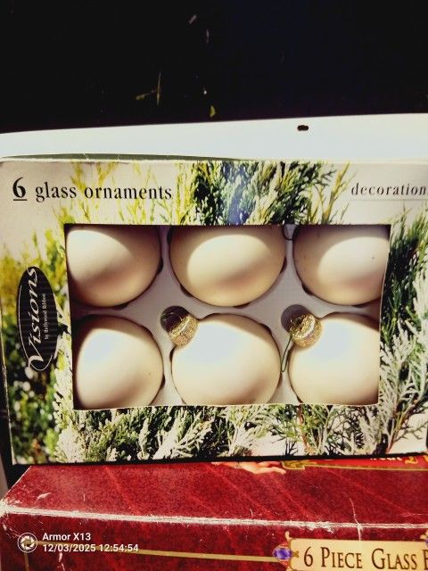 Visions by Bollywood Ribbon Quantity: 6 ornaments Material: Glass Color: White/Cream Details: Perfect for Christmas or general home decor.