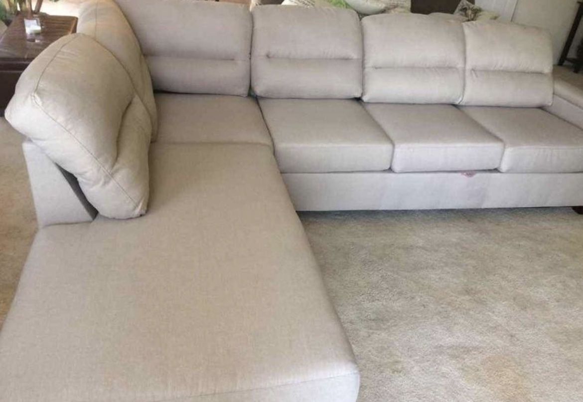 Beige Living Room Set: L Shape Sectional And Ottoman