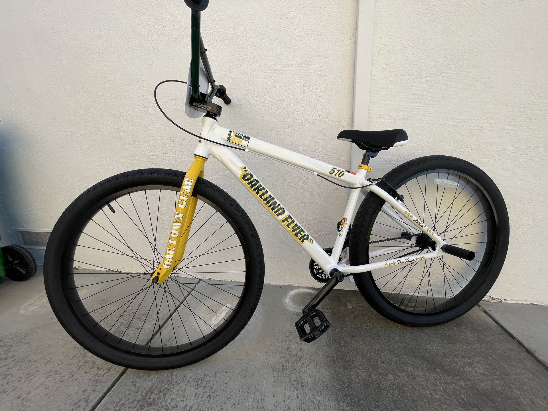 Part of the new SE NorCal series. This bike’s design is a nod to Oaktown’s rich history and diverse culture. A tribute to Oaklands legacy. 1 of 150 made. Brand new never ridden NO TRADES. Low ballers will be ignored. Keywords: big ripper, big flyer, fast ripper, Oakland A’s, NorCal, Bay Area, blocks, money lynch, Oakland flyer, vans, bmx bike, beastmode