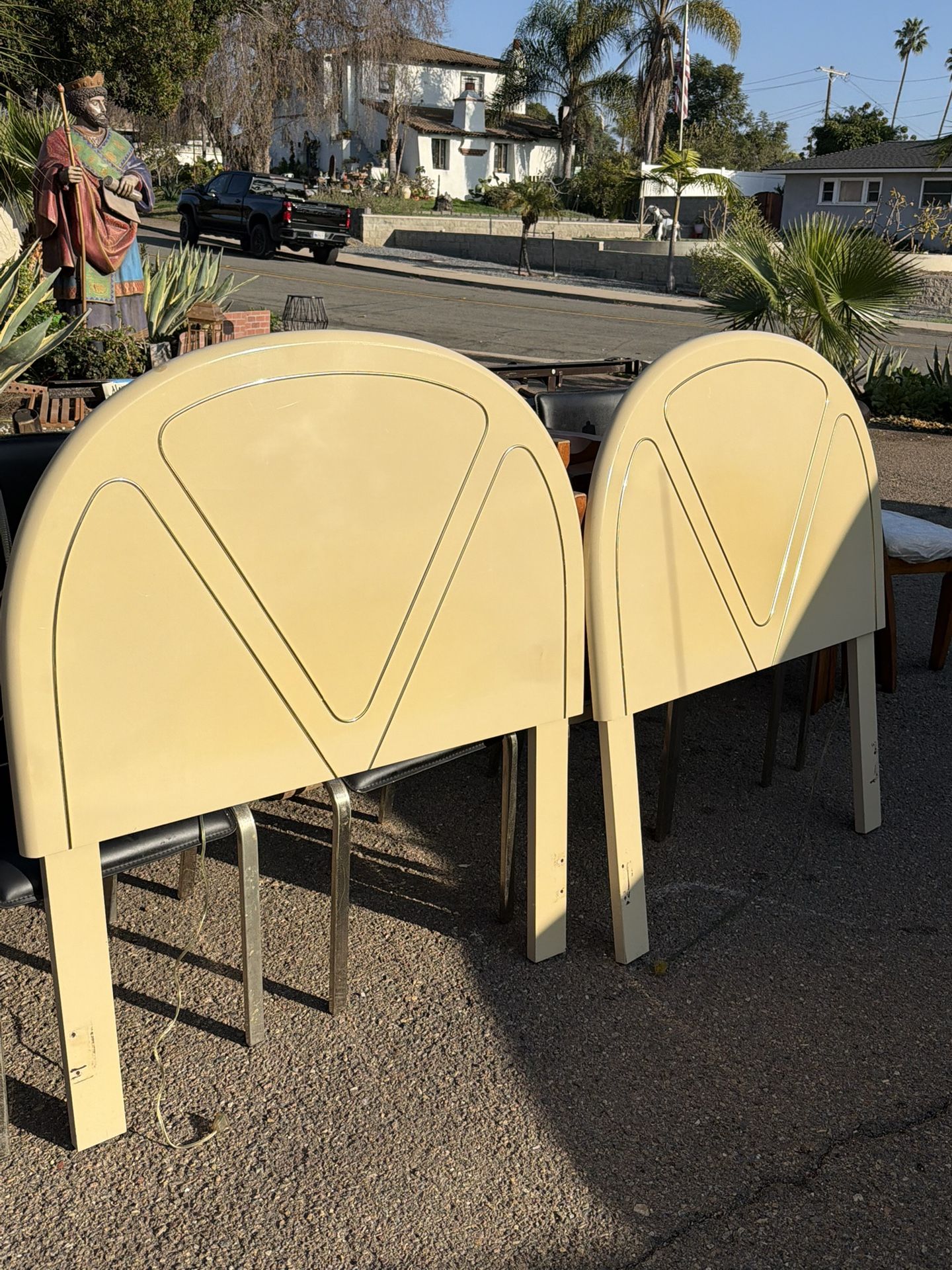 Set of Two 80s Laminate Cream Twin Size Headboard With Brass Trim