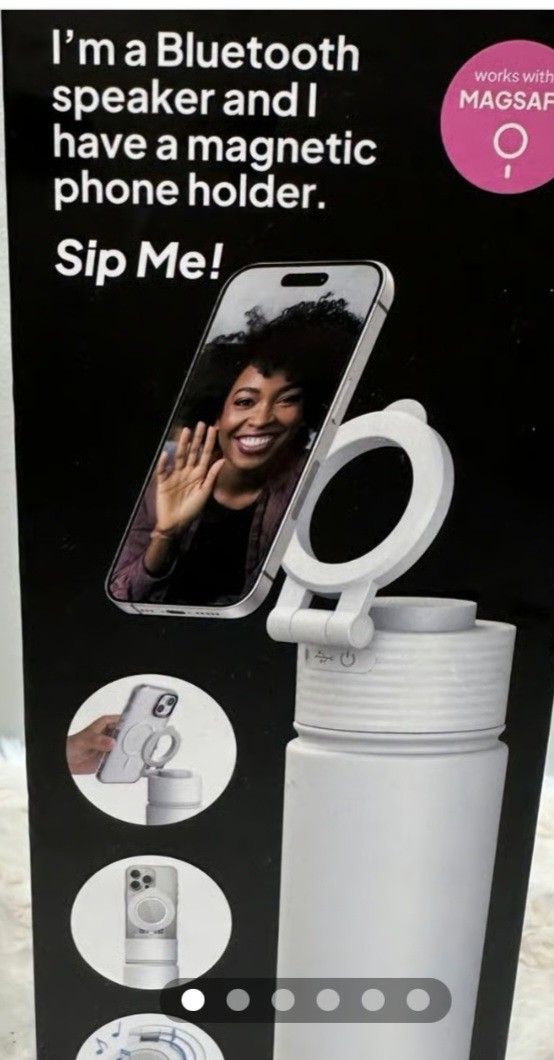 DRIP water bottle has a built-in Bluetooth speaker in the lid. It's made of durable material and comes with a charging cable. The speaker connects easily for music on the go! Bottle co mm es on WHITE color.