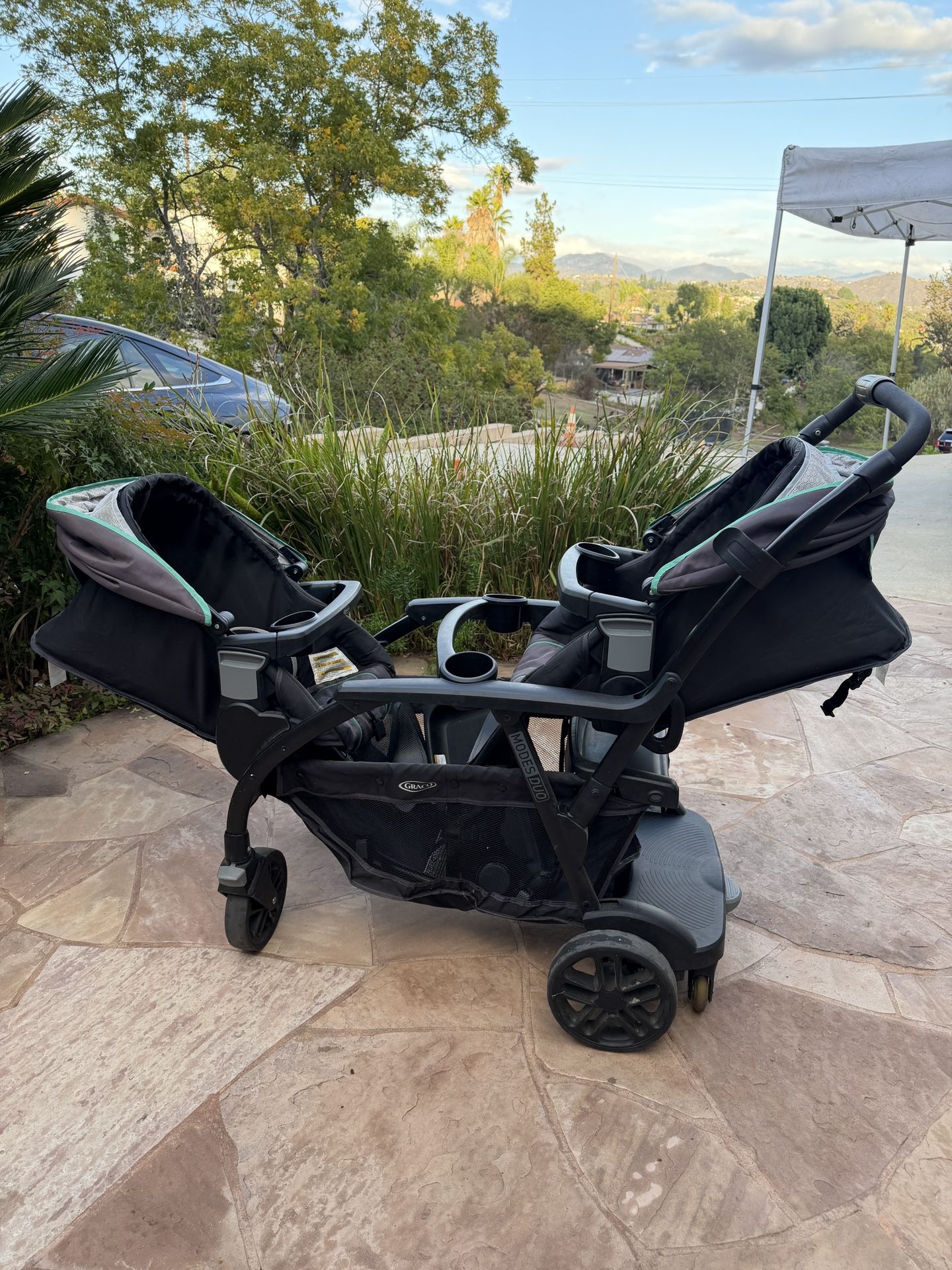 Graco Modes Duo Double Stroller Best stroller, so many seating options!! I love this stroller but my grandkids have grown out of it now. There’s room for a third child to stand or sit in the back too!! Extra drink and snack tray.