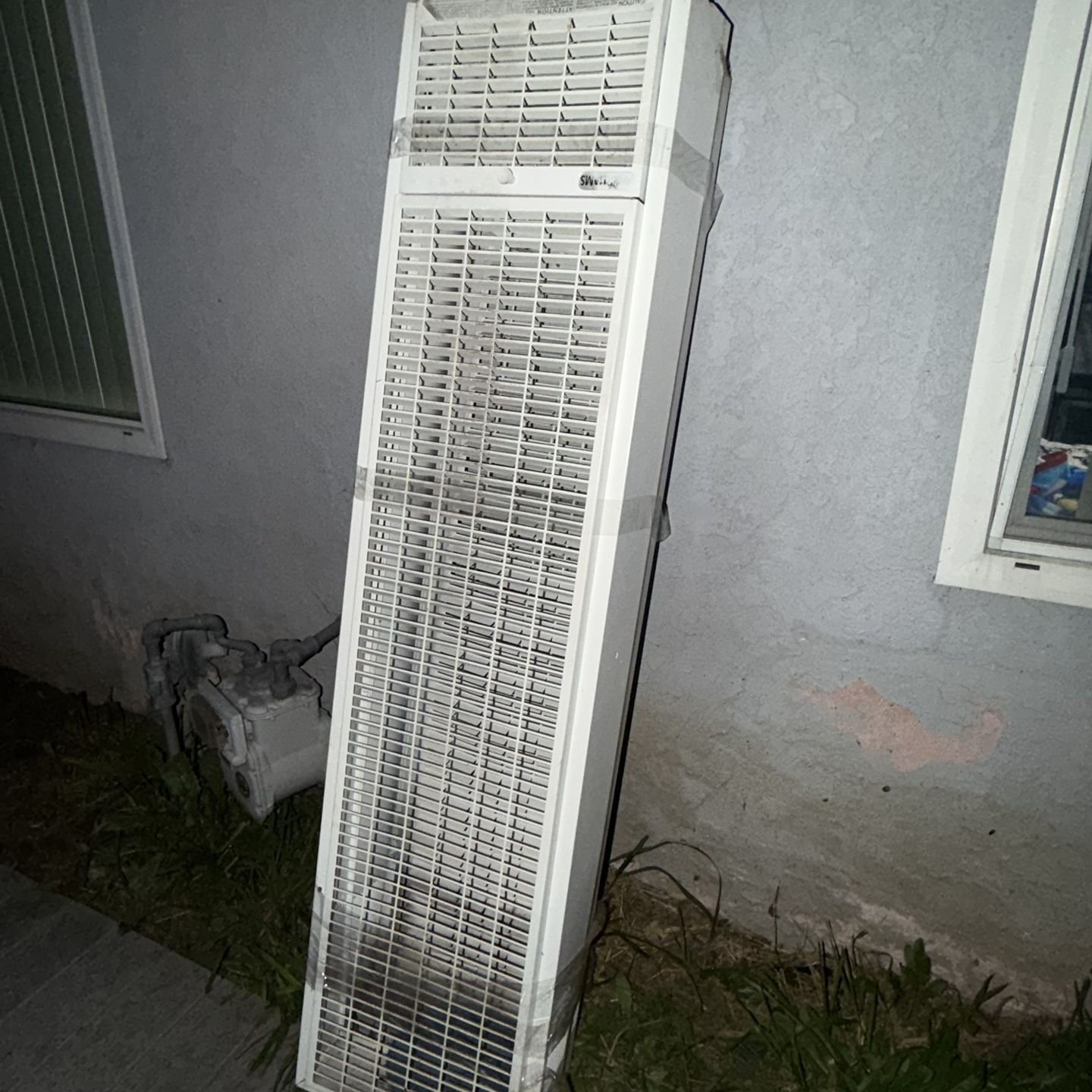 Double sided heater . Works perfect. Great heating power.