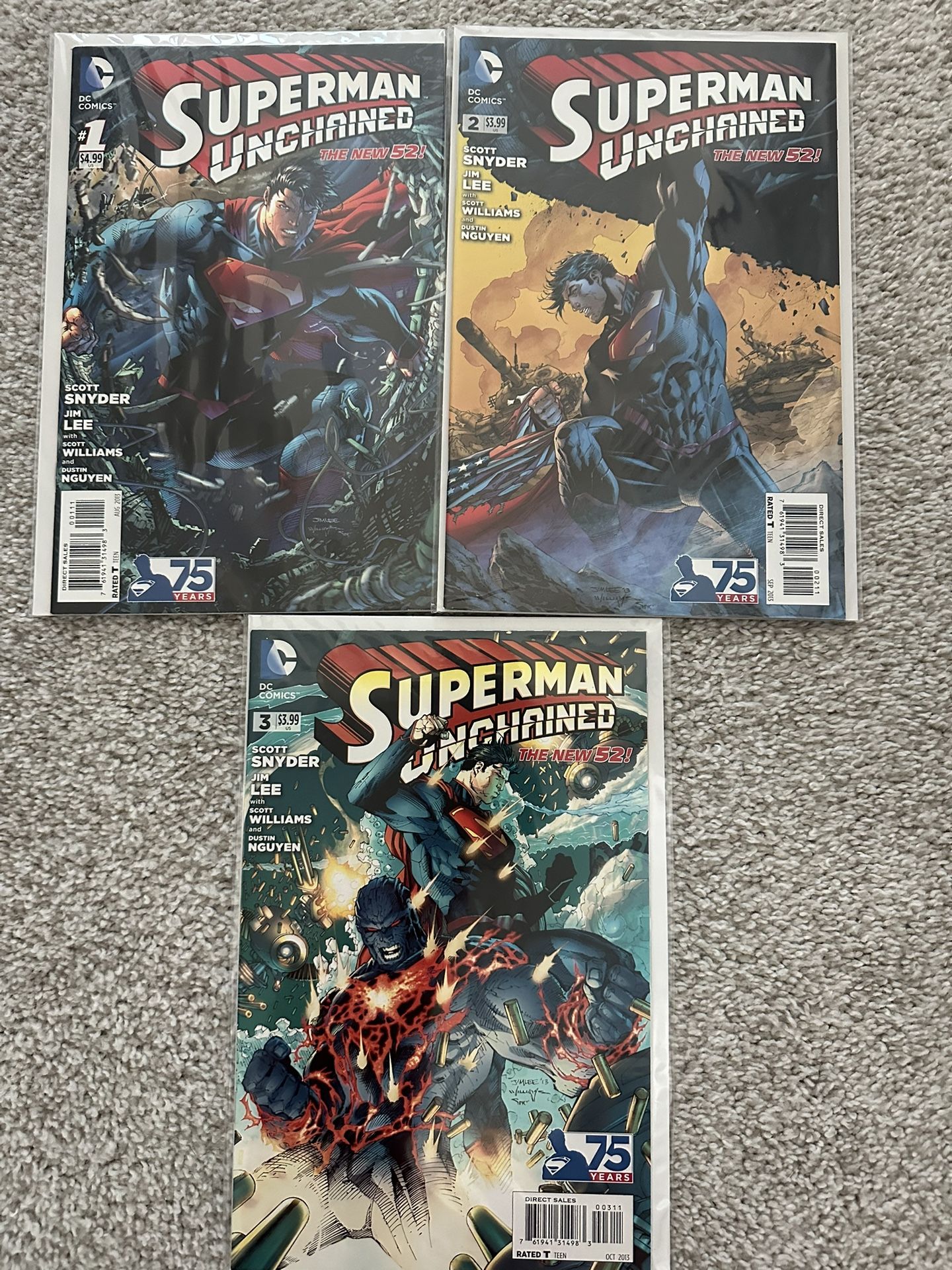 Superman unchained #1,2,3 In good condition All in sleeve and board