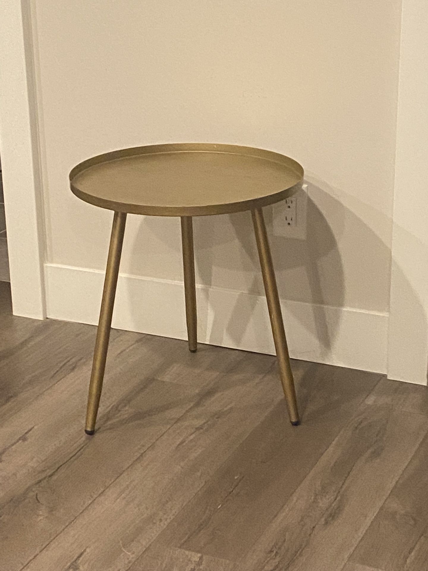 Round Side/Nightstand/Accent Table With The Sturdy Matte Gold Metal Base H19”And 18.5” In Diameter