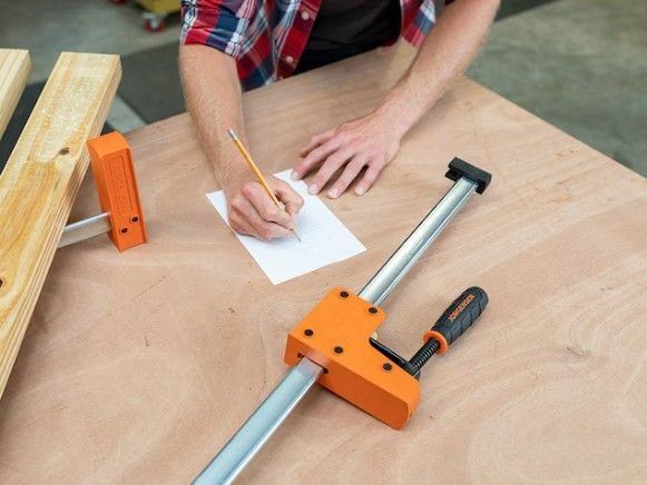 The Jorgensen cabinet master bar clamps are ideal for flat panel, box, cabinet, frame and panel doors assemblies or any other project that requires squareness or evenly applied pressure. Large plastic jaws assure the distribution of clamping pressure over large areas. The jaws stay parallel to assure squareness and prevent work pieces from bowing or lifting. Built in clamp stand allows clamps to stand upright for one handed use and easier/quicker sliding head adjustment. The sliding head can be reversed on the bar and the clamp then acts as a spreader. Clamping faces are 3-3/4-in height and 1-7/8-in. width, high-carbon steel bar is 1-3/16-in x 3/8-in, screw is 5/8-in cold-drawn steel with special, smoothly cut acme threads, large easy to grip handle and load limit is 1,500 lbs. Ideal for do-it-your-sellers, hobbyist, carpenters, cabinet makers, woodworkers, metalworkers and professional trades people of all types The jaws stay parallel to assure squareness and prevent work pieces from bowing or lifting Clamping faces are 3-3/4-in height and 1-7/8-in width Maximum load limit is 1,500 pounds 1319066