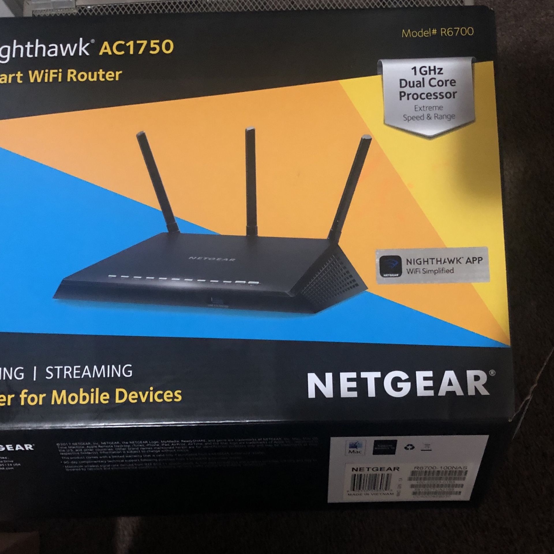 Brand new Smart wifi router for faster internet speed, faster gaming, parental control options, separate guest wifi, and wider range! AC WiFi 1750 Mbps 1500 Sq Ft coverage 25 devices 4 High Speed 1GB Ethernet ports 3.0 USB port $75 OBO