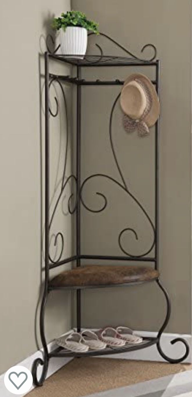 Kings Brand Furniture Brushed Copper Metal Corner Entryway Hallway Storage Bench with Coat Rack