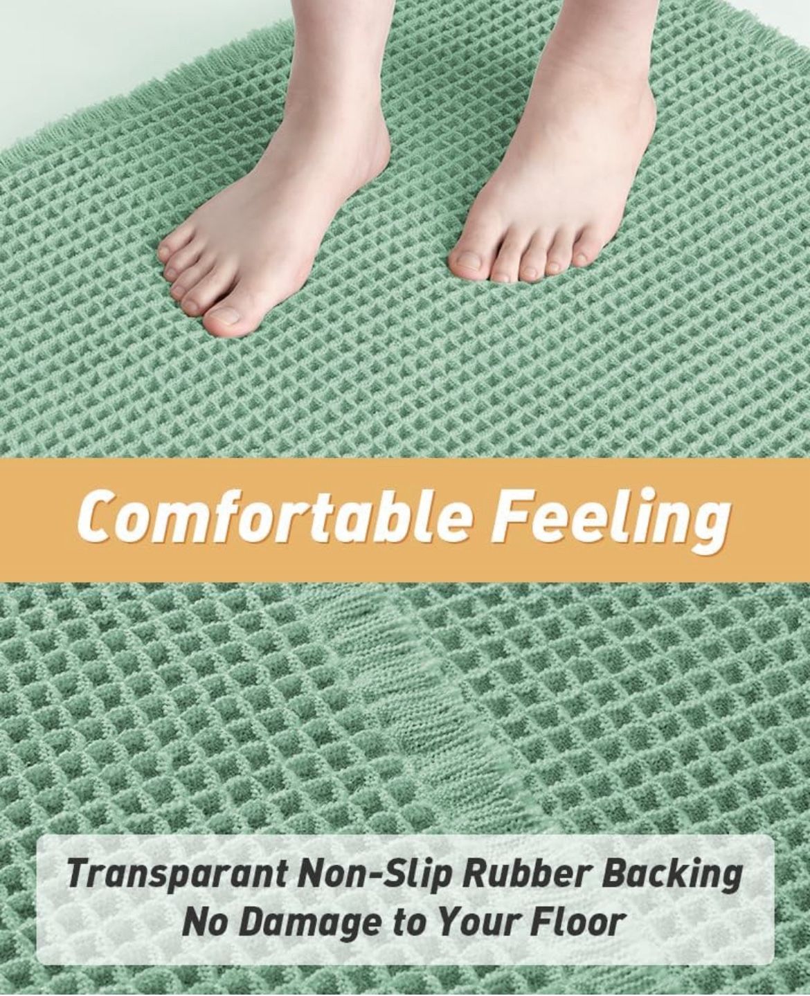 NEW Waffle Bath-Mat, & 6 Foot Runner Absorbent Non Slip, Machine Washable