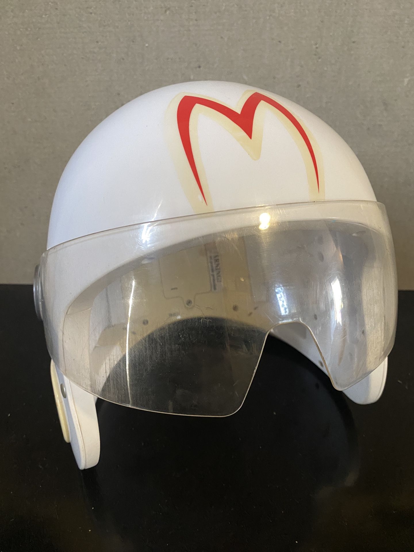 Mattel toy helmet with sounds. Very neat piece if you are a fan of the franchise. Fresh batteries and it all still works. Definitely used but functional. The lens has scuffs from sliding. The battery compartment was corroded but now cleaned up.