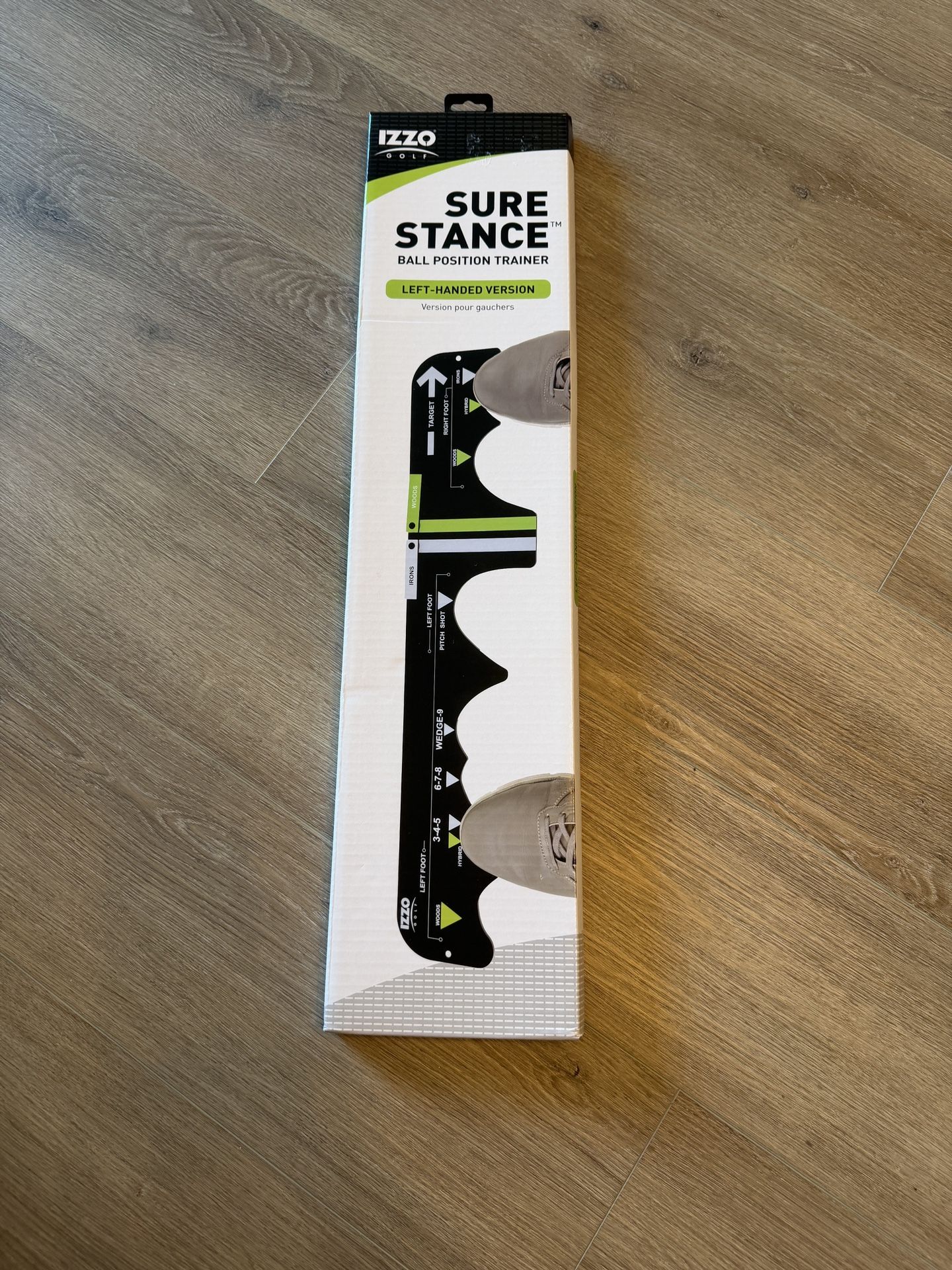 Swing trainer for left handed golfers. Learn where to position your feet for each club.