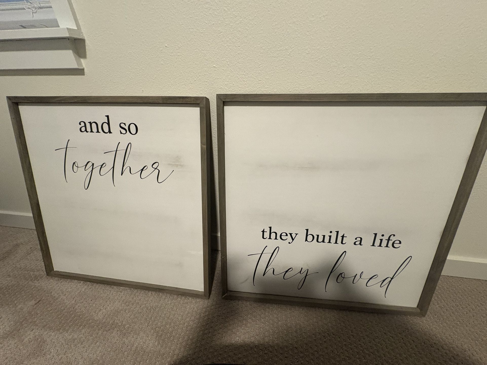 2 24x24 hand made wall hanging decor. Easy hang. Grey wash border