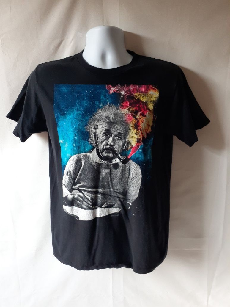 Albert Einstein men's black graphic short sleeve t-shirt size M.Laid flat the length is 27"the width from pit to pit is 19"and the sleeve length is 7".Pre-owned and in excellent condition from a clean and smoke-free environment.Thank you for viewing this item. B15 69 27