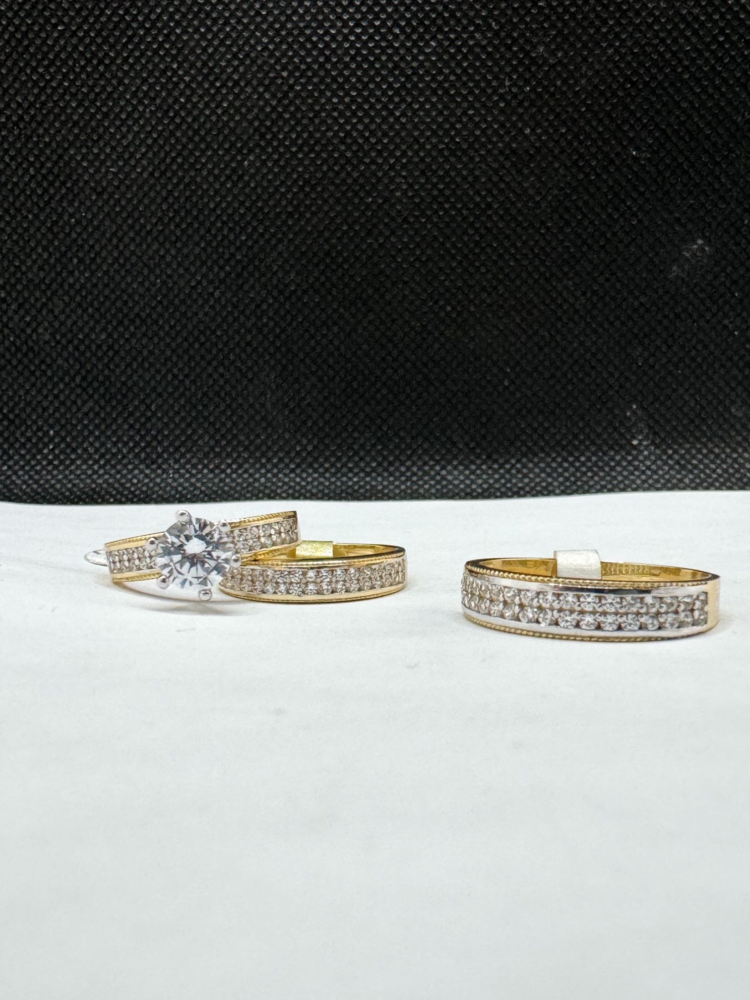 14k solid gold trio wedding sets