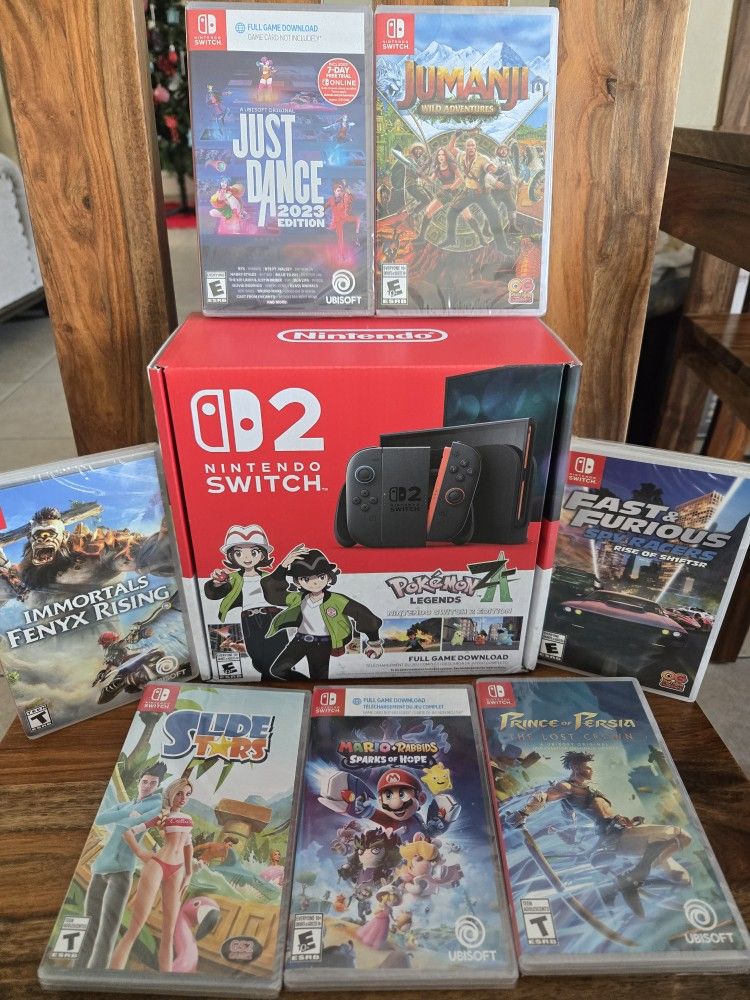 📦 BRAND NEW. SEALED GAMES ❗NO TRADES ❗PRICE IS FIRM ❗PICK UP ONLY ✅ NINTENDO SWITCH 2 CONSOLE BUNDLE ✅ POKÉMON LEGENDS Z-A GAME ✅ JUST DANCE 2023 ✅ JUMANJI WILD ADVENTURES ✅ IMMORTALS FENYX RISING ✅ FAST & FURIOUS SPY RACERS ✅ SLIDE STARS ✅ MARIO+RABBIDS SPARKS OF HOPE ✅ PRINCE OF PERSIA THE LOST CROWN NINTENDO SWITCH 2 MEGABUNDLE - 8 GAMES (NO TRADES, BRAND NEW)