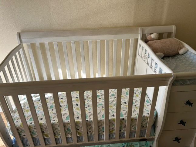 Great crib has lots of storage for wipes and diapers changing table and drawers for clothing my som our grew do need to get rid of to open space up