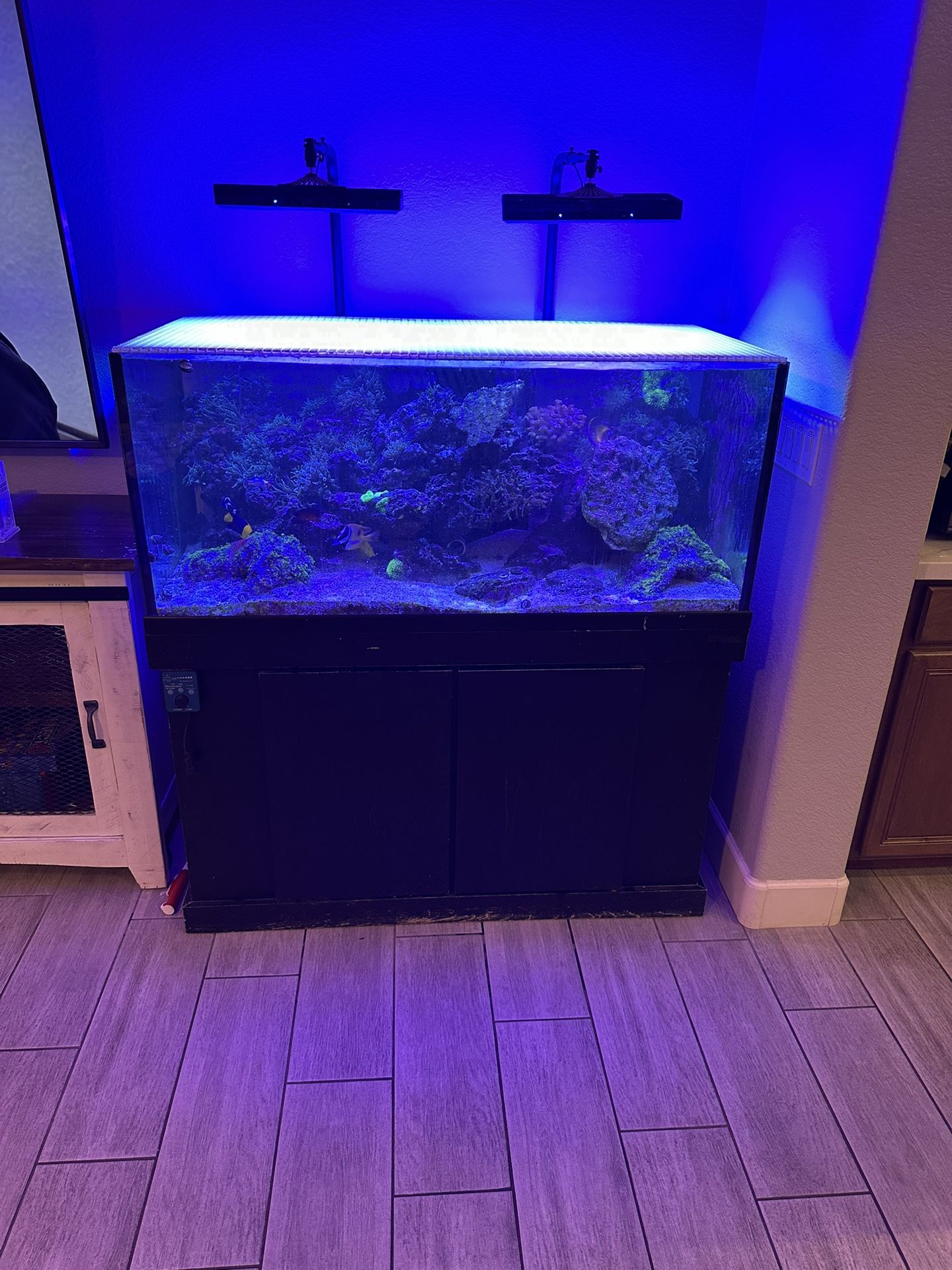 Fully operating 100 gallon saltwater fish tank. Rimless glass tank in great shape. Over 100 lbs of live rock with roughly 25-28 nexus joker bubbletips. Rear overflow with sump. Lights are less than a year old. Protein skimmer and UV sterilizer with two extra bulbs. Tank has been up and running for about ten years. Livestock and coral is included and is over $5,000 retail value alone. At this point I do not want to part everything out. Dm me for details on livestock and corals. Asking $5,000 obo.