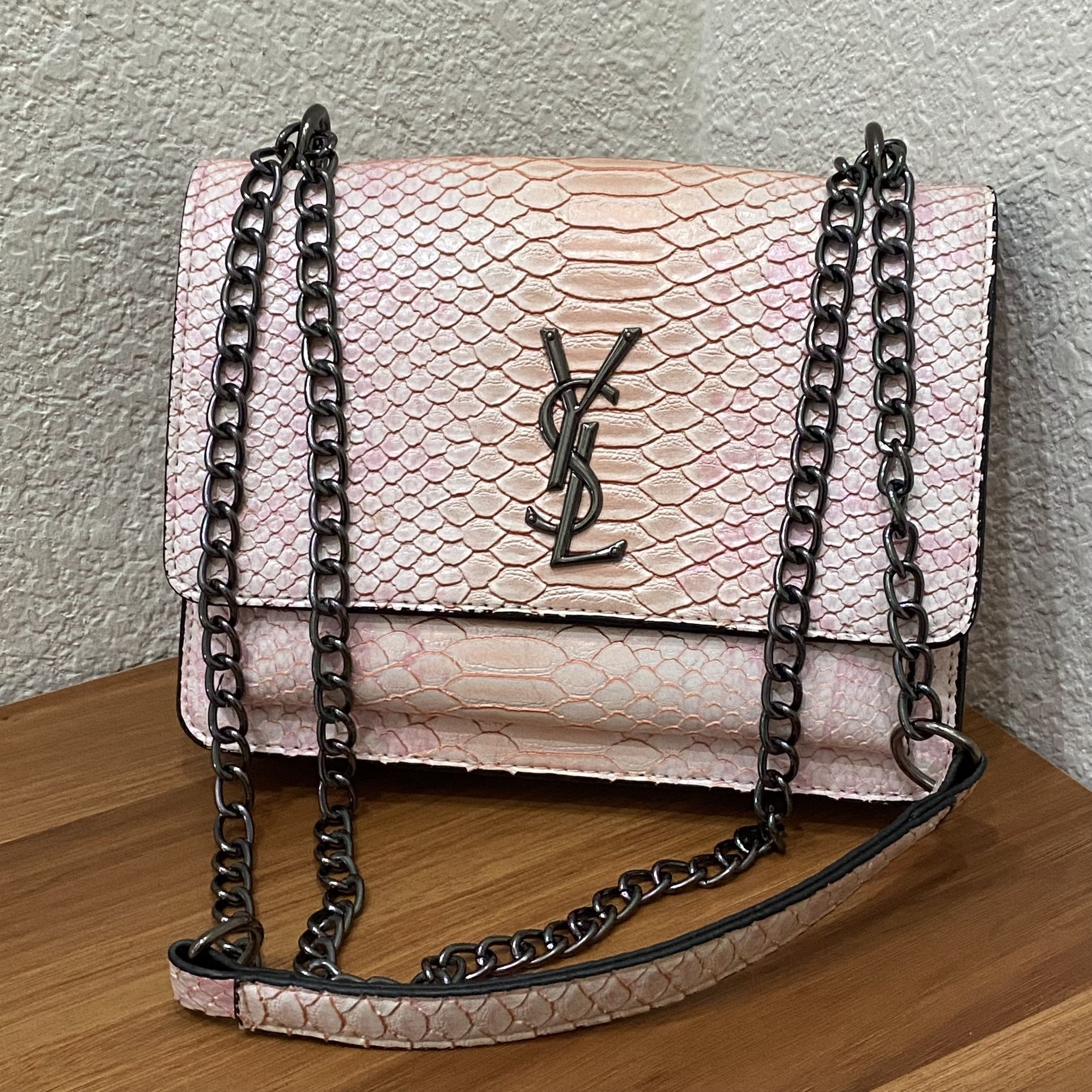Pink YSL Style Faux Leather Chain Bag