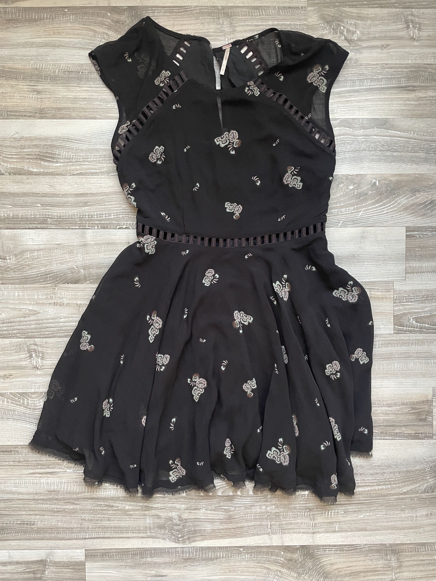 Free People Short Sleeve Black Floral A Line Dress Size 2 Polyester Round neck