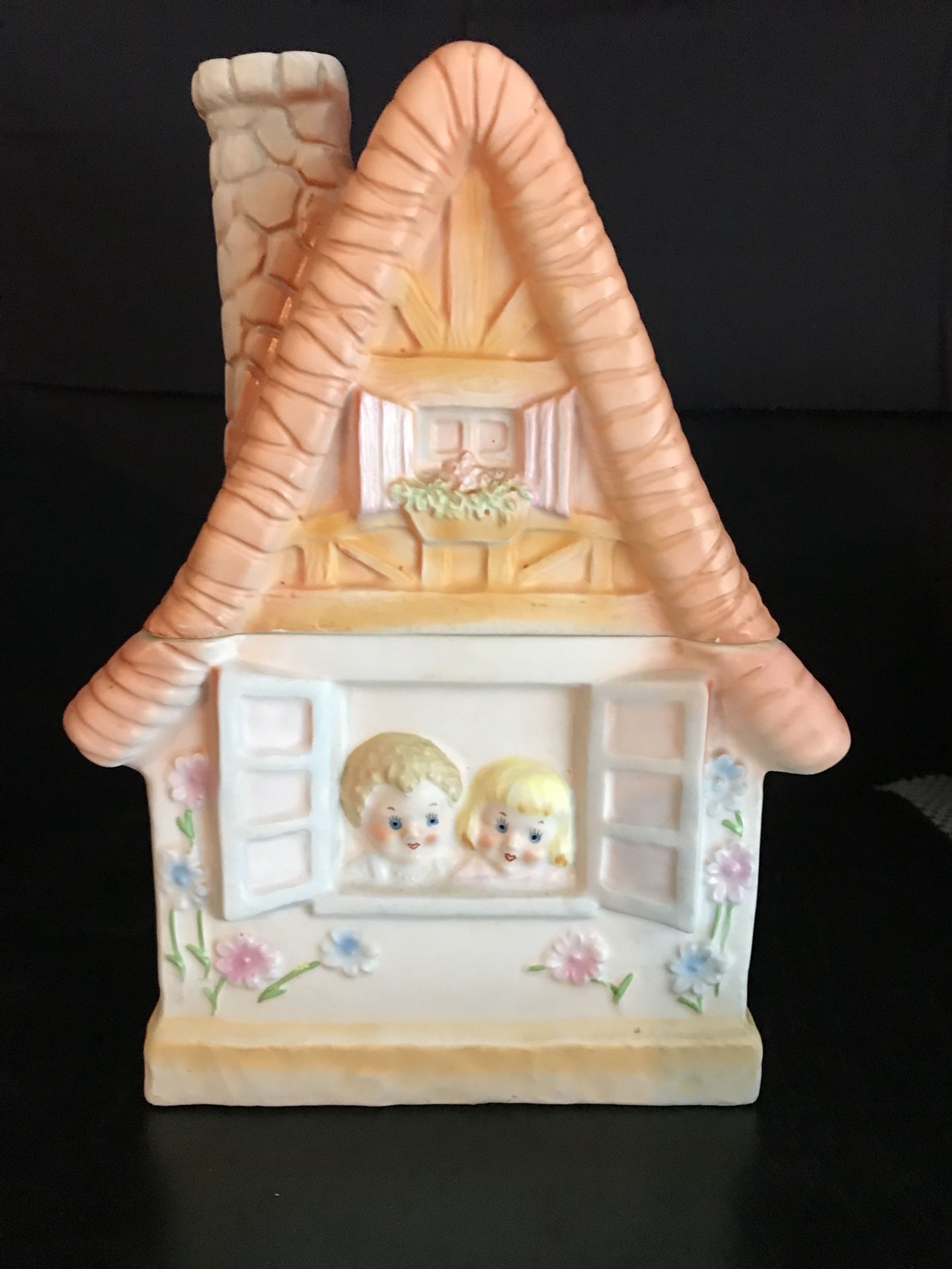 Charming vintage cookie jar. Made by Norcrest 1950’s. Made in Japan. Currently on eBay for $120!