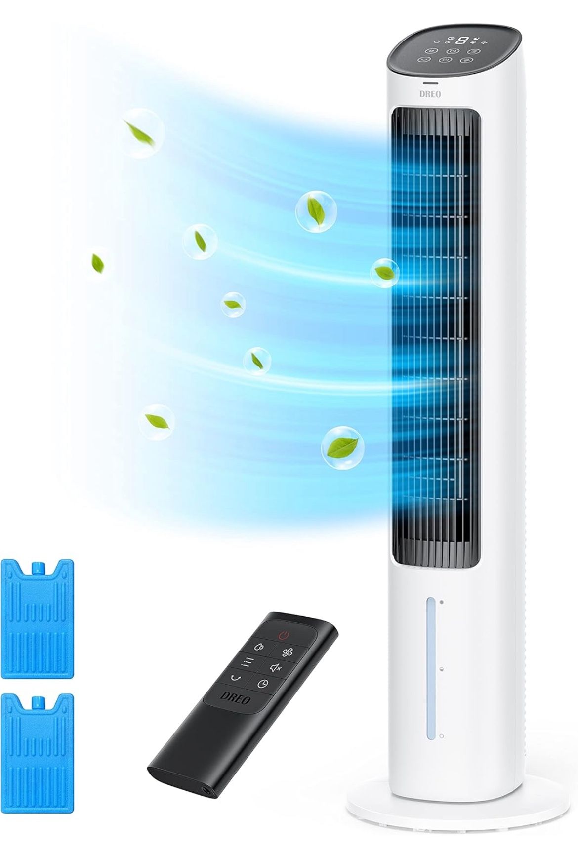 Dreo Evaporative Air Cooler, 40” Cooling Fans that Blow Cold Air, 80° Oscillating, Removable Water Tank, Ice Packs, Remote Control, 4 Speeds, 7H Timer