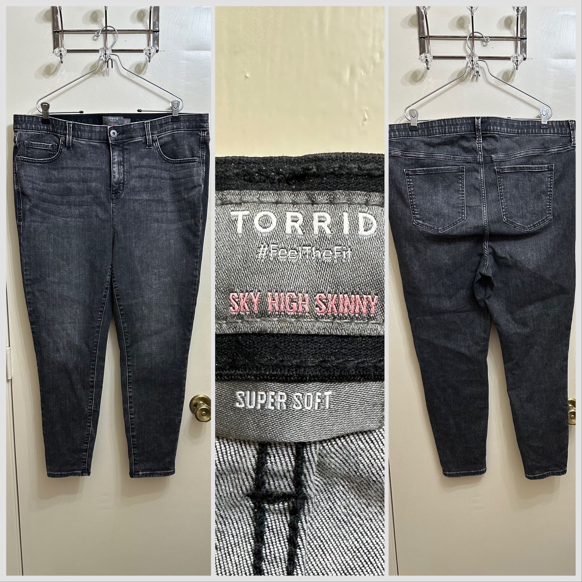 Womens Torrid Sky High Skinny Super Soft jeans size 18 Short. Color is black wash. In good condition