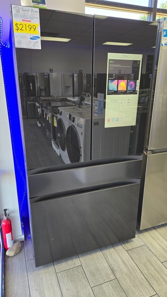 Counter Depth 4-Door French Door Refrigerator with customizable and changeable door panels available in a variety of colors and finishes featuring Samsung’s Family Hub which lets you see inside your refrigerator, manage your family’s calendars, stream music, see who’s at the front door and much more, all right from your fridge. It also features the Beverage Center with both a water dispenser and AutoFill Water Pitcher. Plus a Dual Ice Maker with cubed ice and Ice Bites.