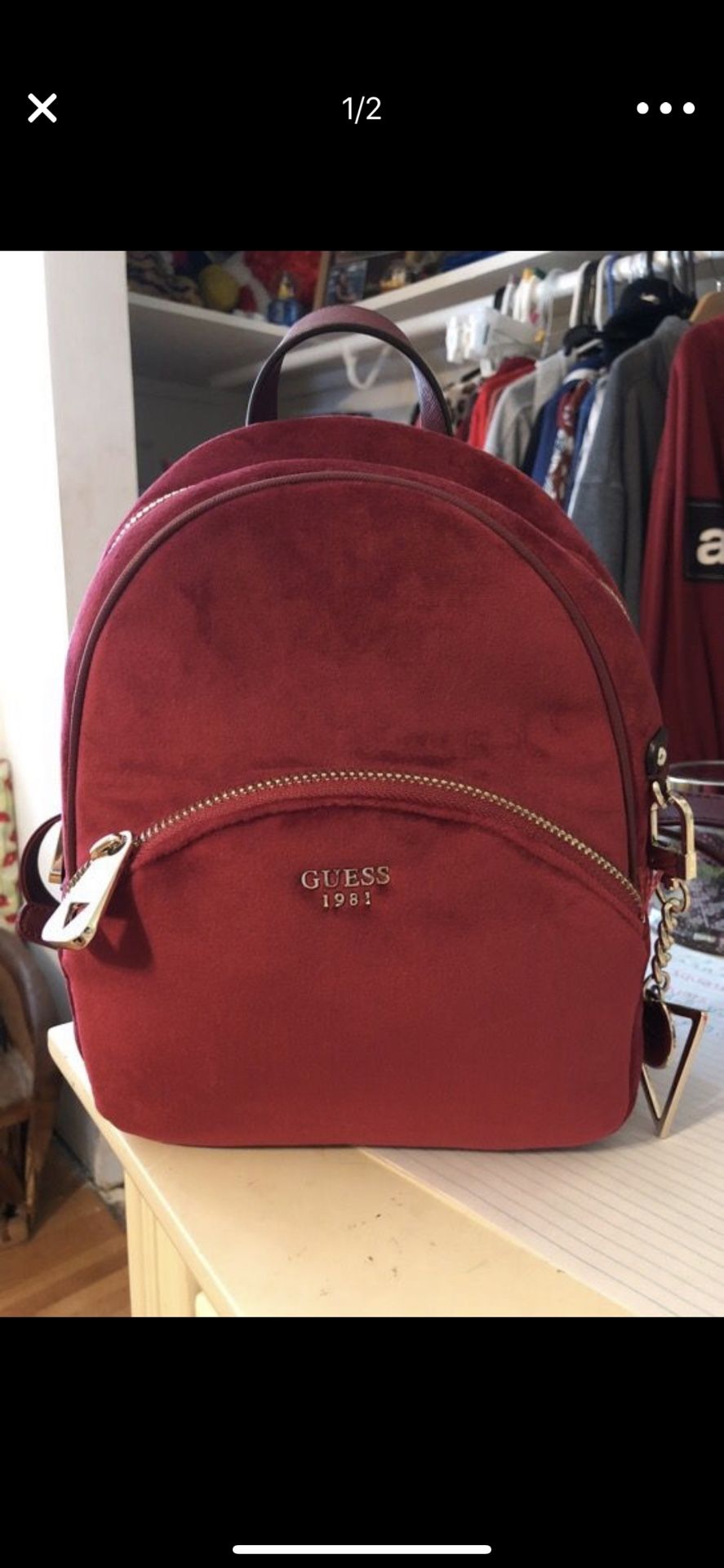guess velvet red backpack