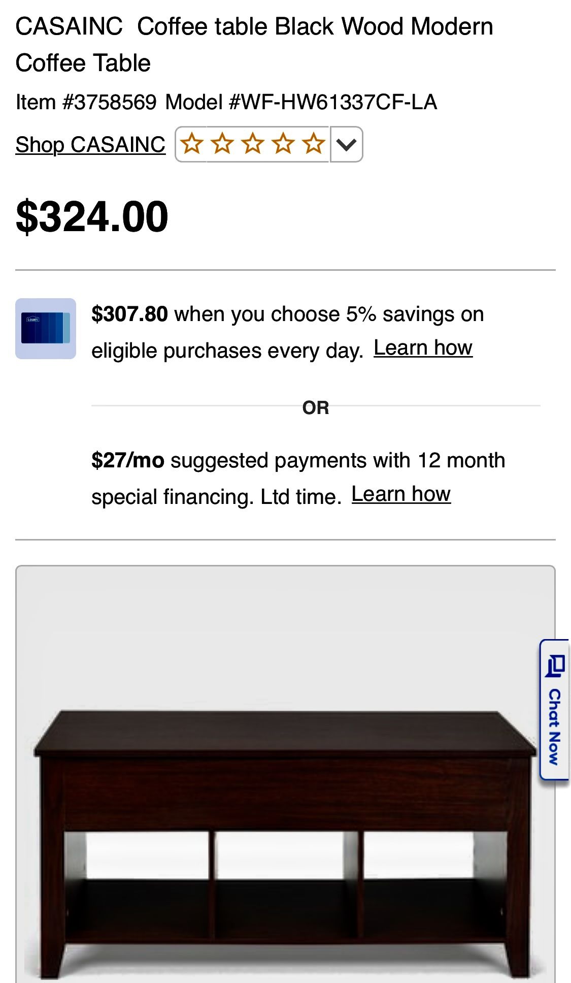 Modern Style Black Wood Coffee Table New still in box reg 324$ sale 225$