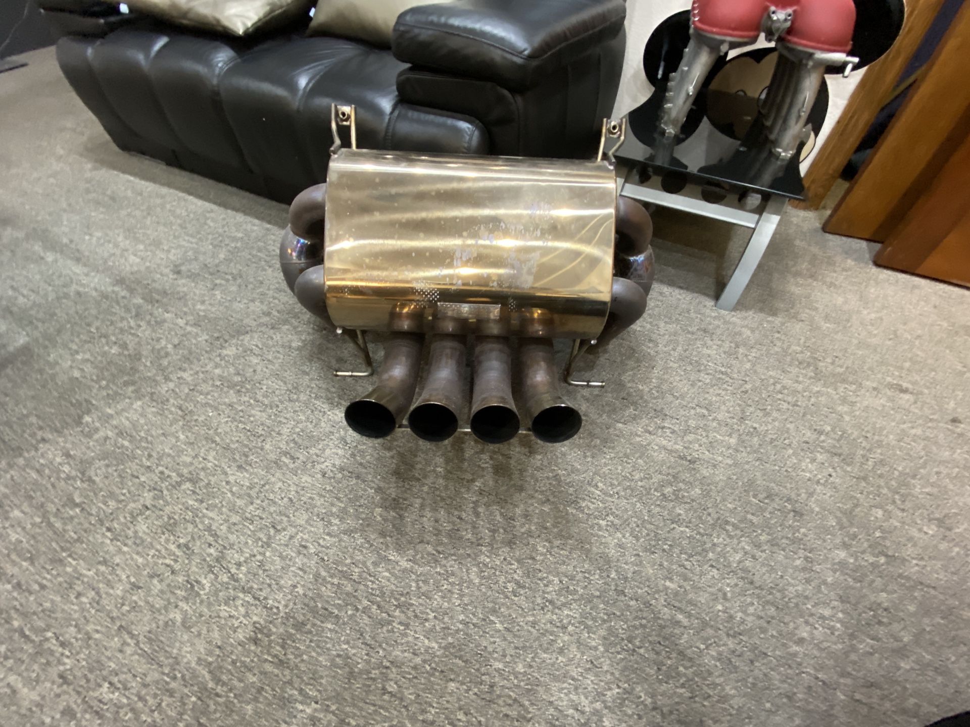 This is a kreissieg exhaust for a Lamborghini Aventador SV or a Lamborghini Aventador. This exhaust is the F1 high pitch tuned. It is the loudest exhaust they make. It is by far the best sounding exhaust I’ve ever heard on Lamborghini! I had this on my SV and I was hoping to have it converted to fit on my new SVJ roadster but the configuration is completely wrong