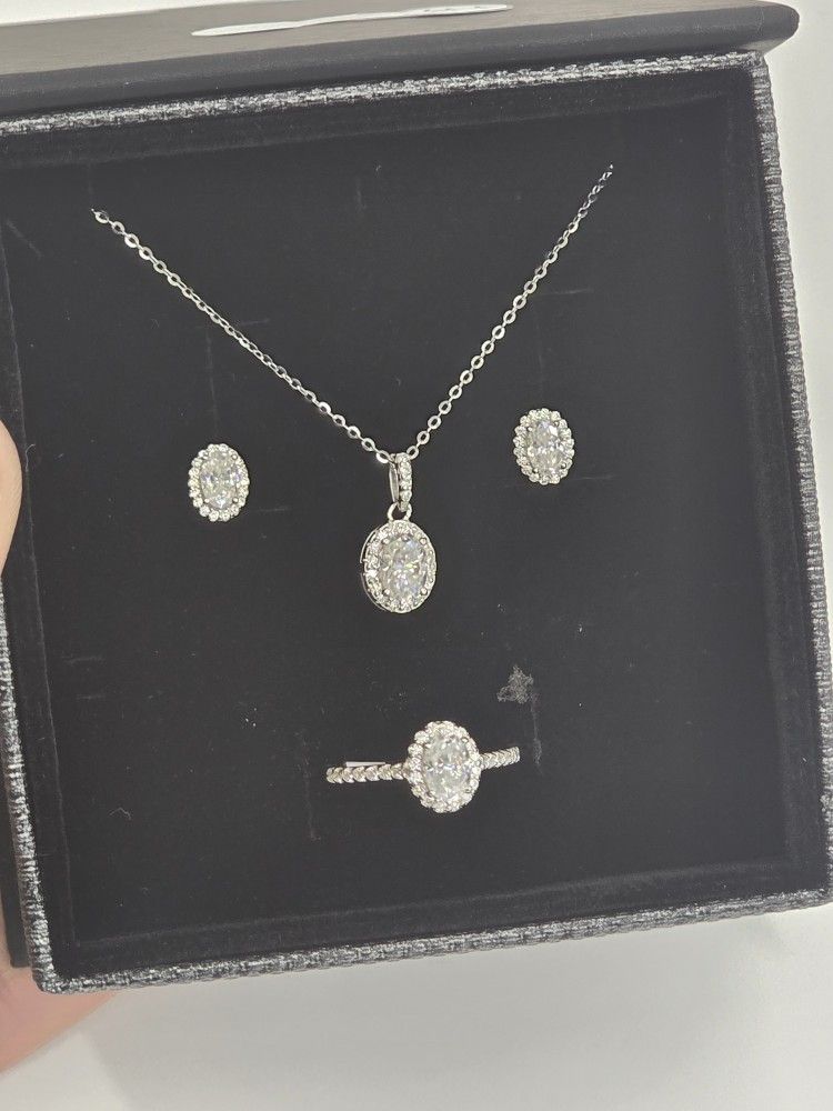 925 Sterling Silver Moissanite Diamond Necklace Set For Women