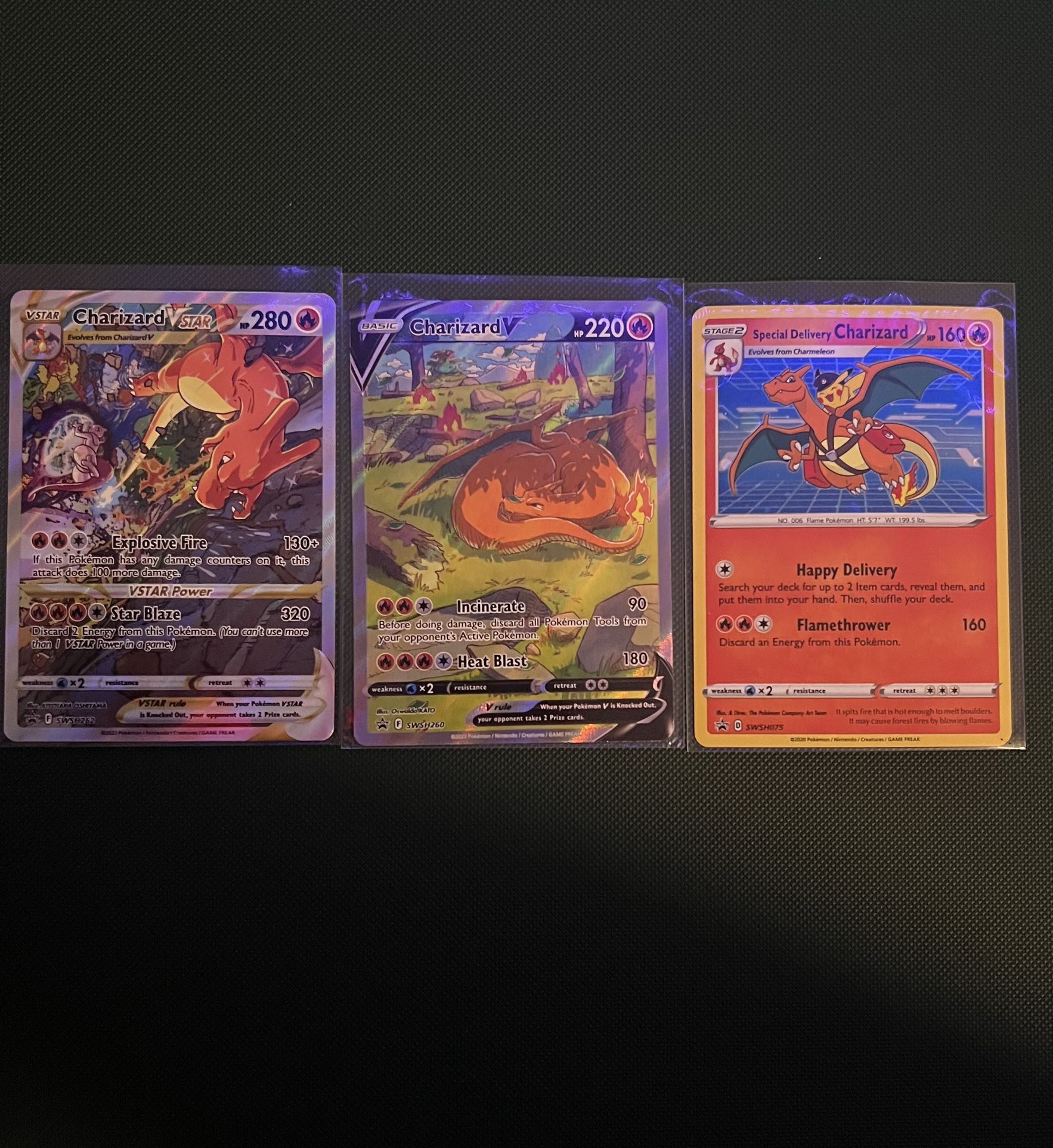 All are NM, I cracked the Special Delivery Charizard from a 9 Charizard V - SOLD Charizard VStar - $45 Special Delivery Charizard - $110 Feel free to send offers, not necessarily looking to trade.
