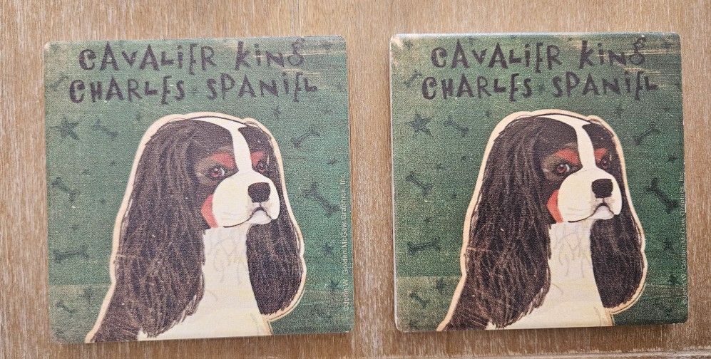 Set 2 Thirsty Stone King Charles Cavalier Dog Tile Stone Trivets Coasters