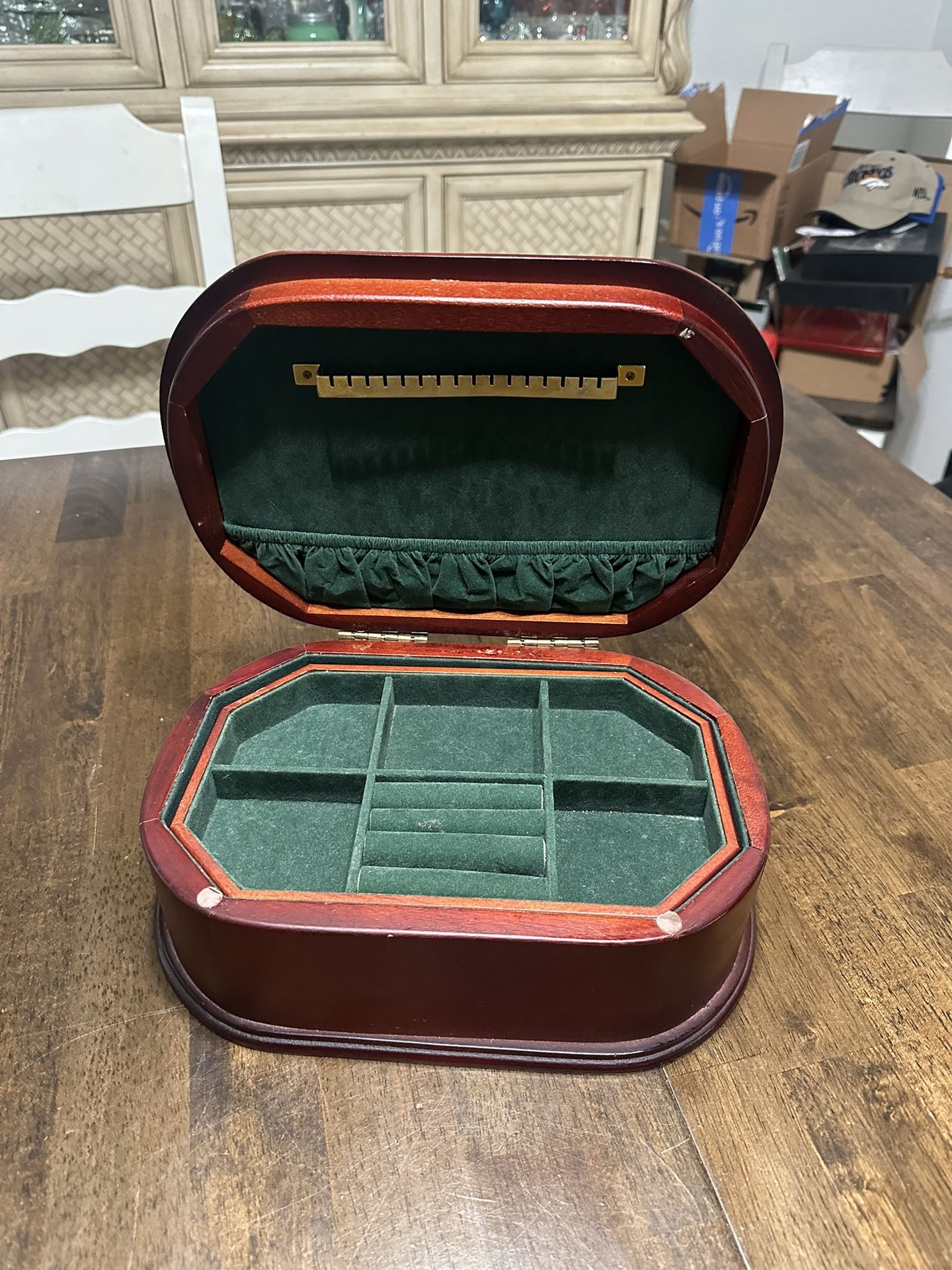 Nice gently used condition very clean overall oval Cherrywood finish table top jewelry box