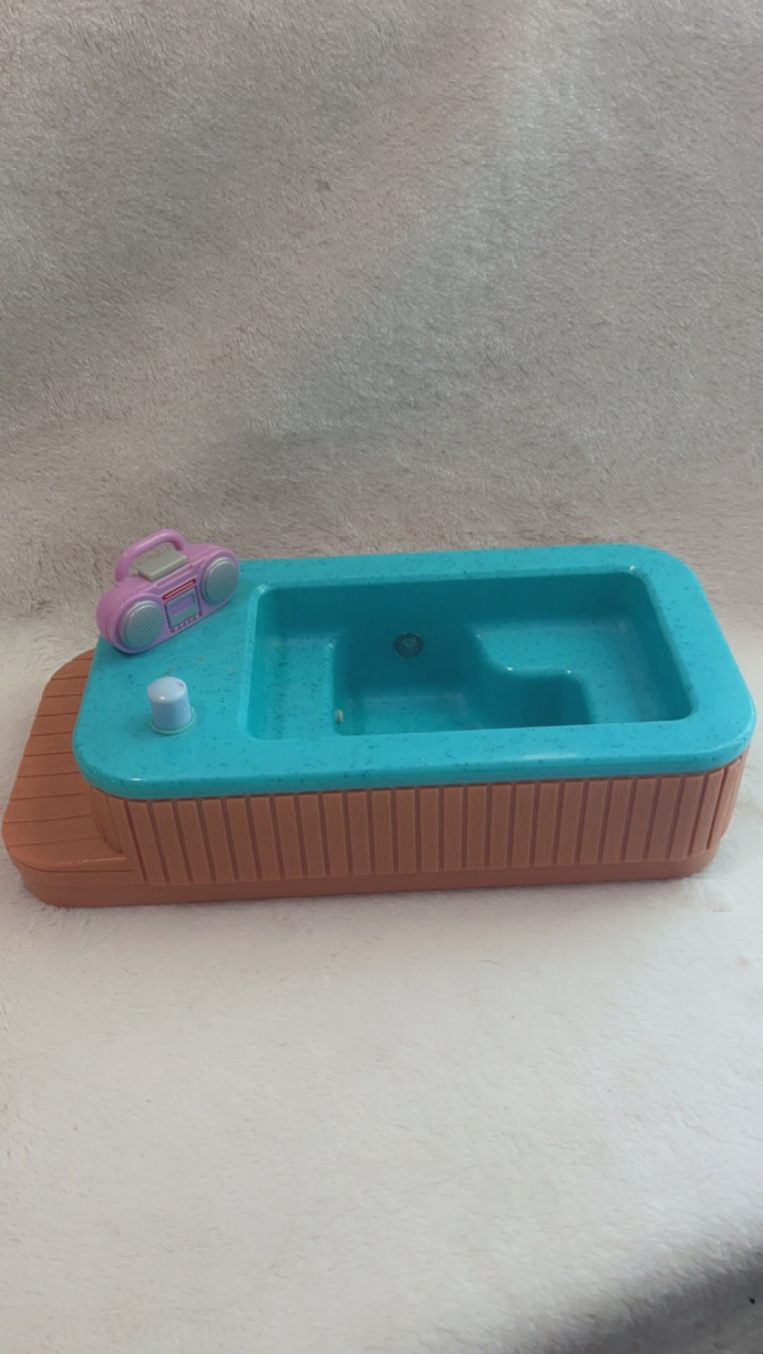 Fisher price hot tub comes ready to blow jet bubbles. Batter slot clean (batteries not included) but has not been used in a few years. Lightly used but still in excellent/good condition.