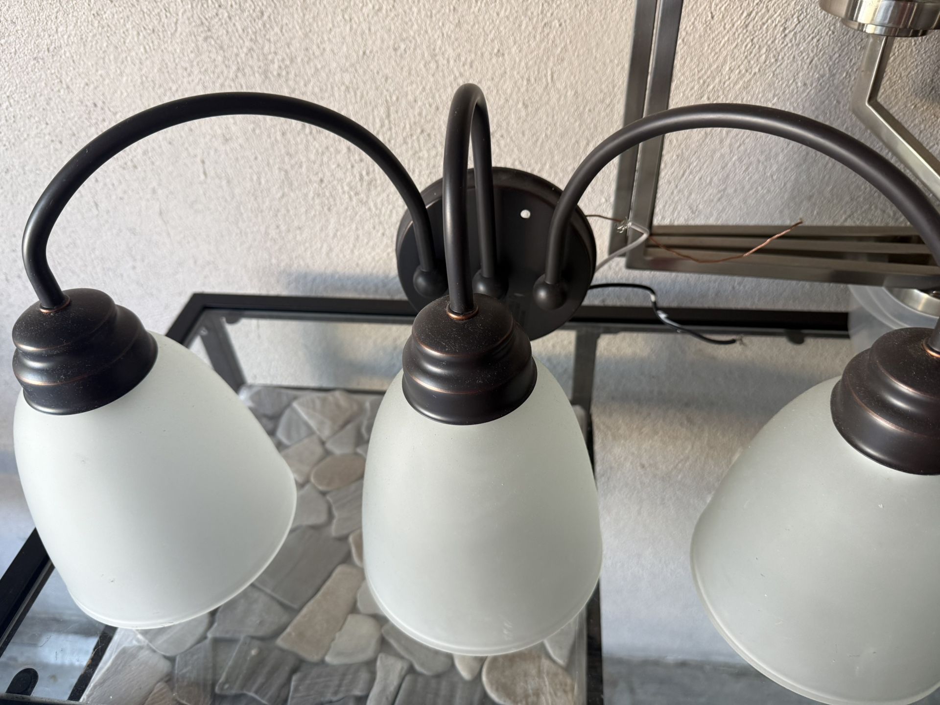 Chandelier and bathroom light fixture: both for $15 or $10 each