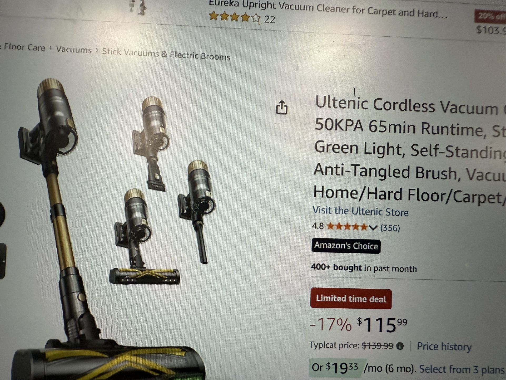 Brooms Ultenic Cordless Vacuum ( 50KPA 65min Runtime, St Green Light, Self-Standin Anti-Tangled Brush, Vacul Home/Hard Floor/Carpet,