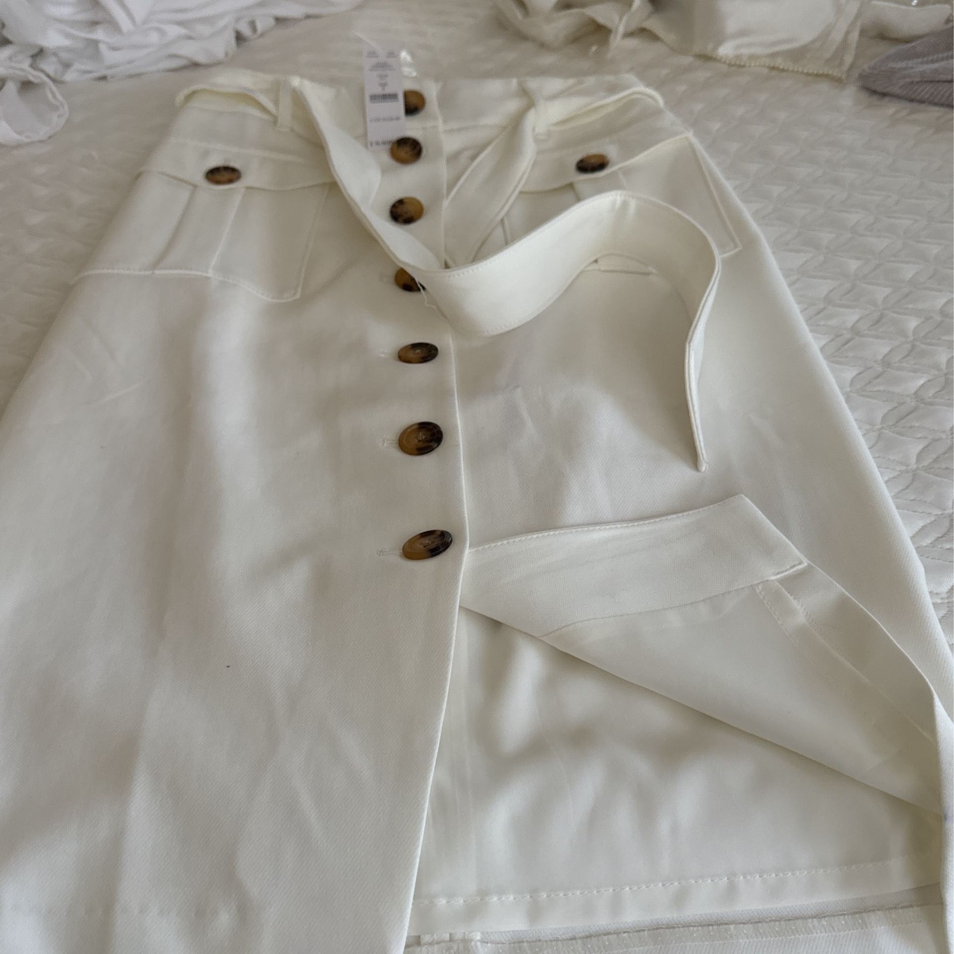 This beautifully tailored, fully lined, creamy white skirt is from White House Black Market and was never worn!