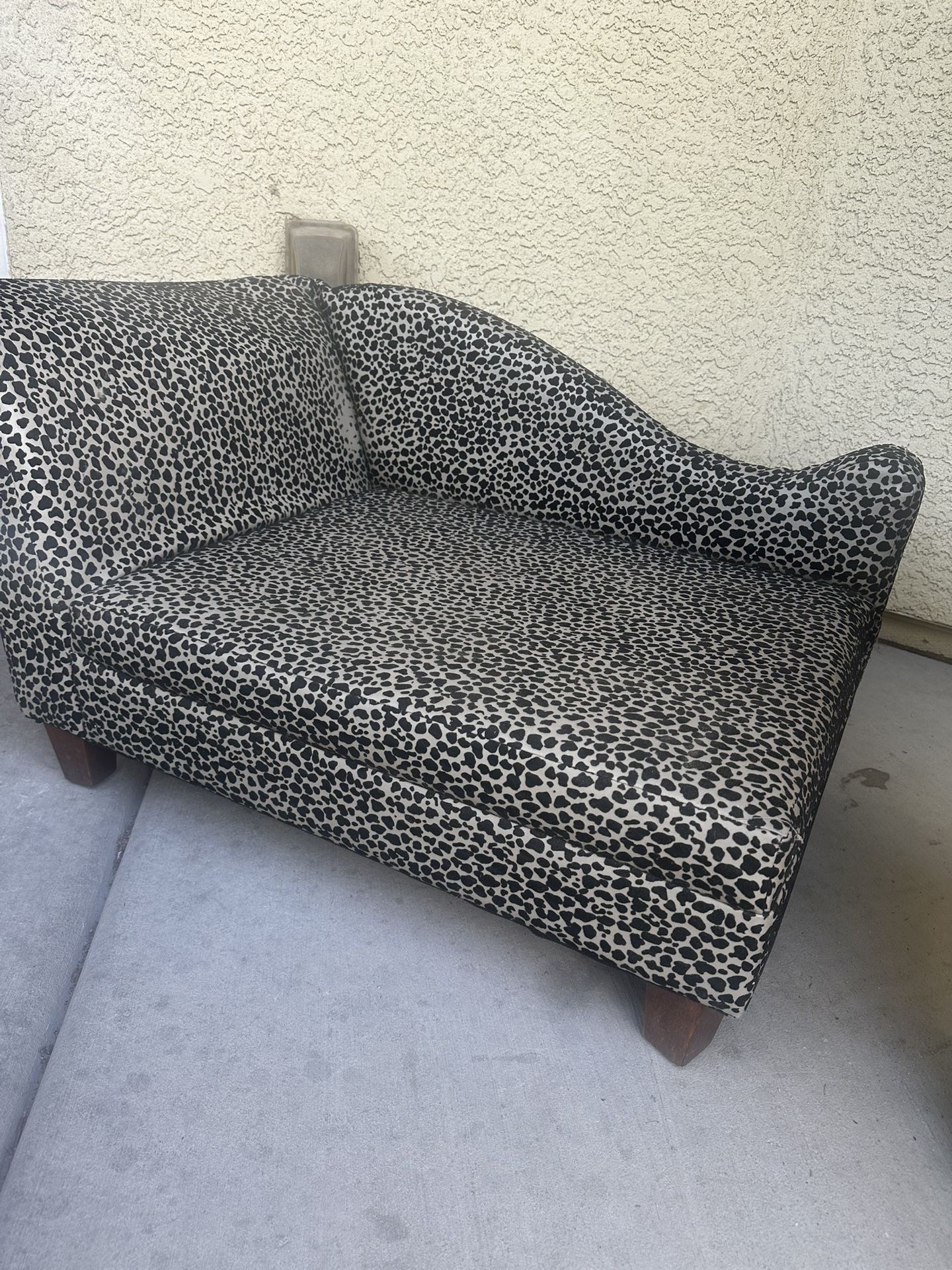 Cute and cozy dog sofa bed perfect for small–medium dogs. Raised sides give pets a comfy place to rest their head and feel secure. Clean and in great condition. Great for the living room so your pup has their own little couch.