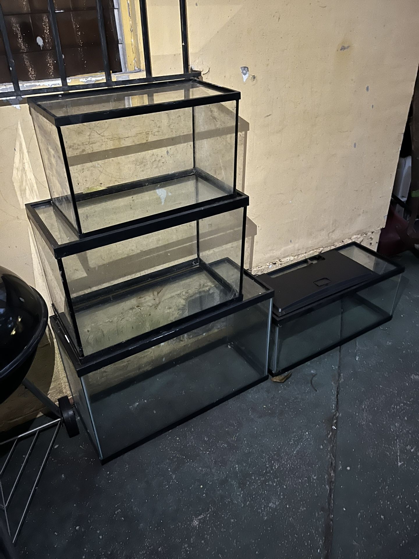 Fish tanks all sizes. All cost same $20 each no matter the size.